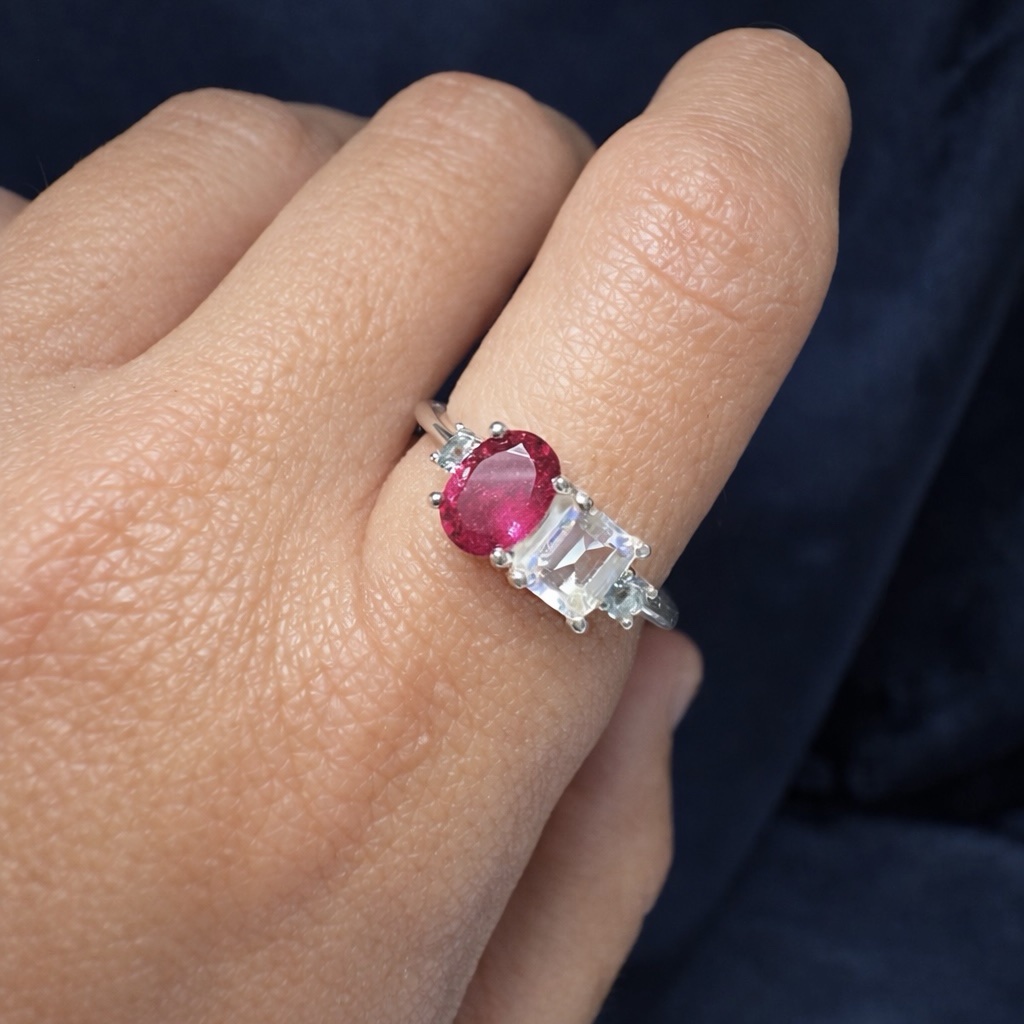Anillo PRESENCIA Rodolita y Zafiros T16