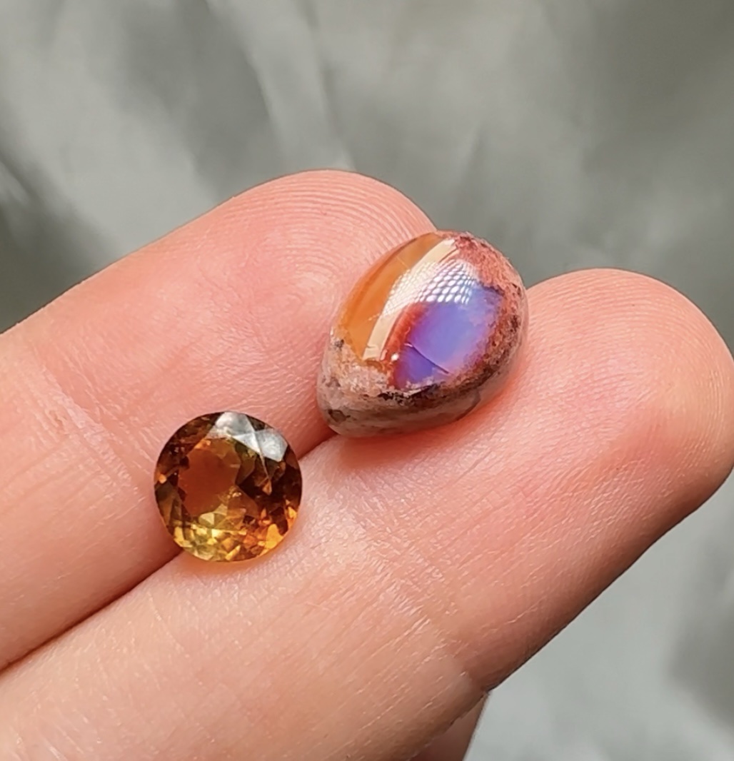 Ópalo de fuego y turmalina. Piedras naturales