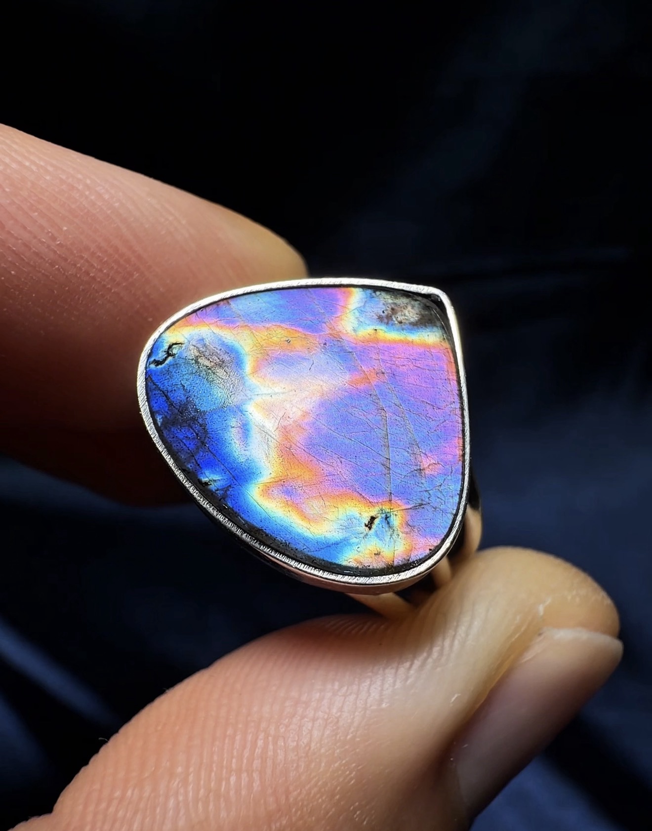 Anillo con labradorita natural